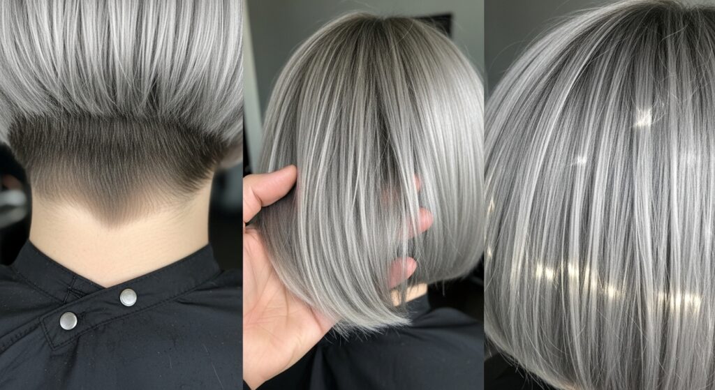 The “Chrome” Finish: While it can be worn in any color, the Detroit Bob truly shines with high-contrast or metallic-inspired color. Icy platinum, gleaming silver, or gunmetal gray pay homage to the city’s automotive heritage. Alternatively, bold, dark roots melting into a bright, reflective shade creates a modern, molten effect. The finish is always sleek—think a high-shine gloss or a matte, textured paste—but the color choice often carries a cool, industrial tone.