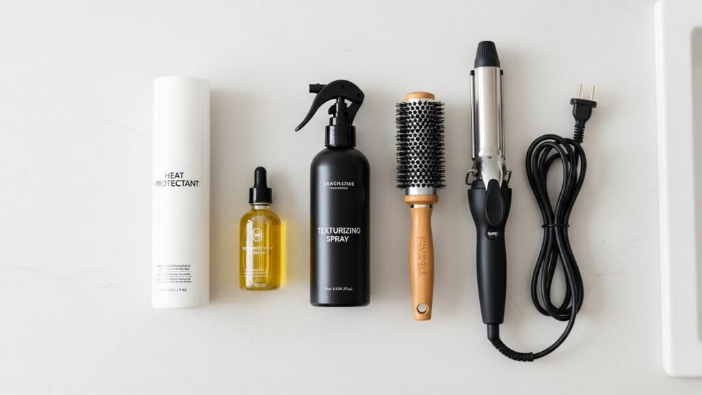 For the Quick Polish: Blow-dry with a round brush for smoothness and volume at the roots, then use a 1-inch curling iron to add very loose, alternating waves. Break up the waves with your fingers—never a comb—for that signature undone finish.