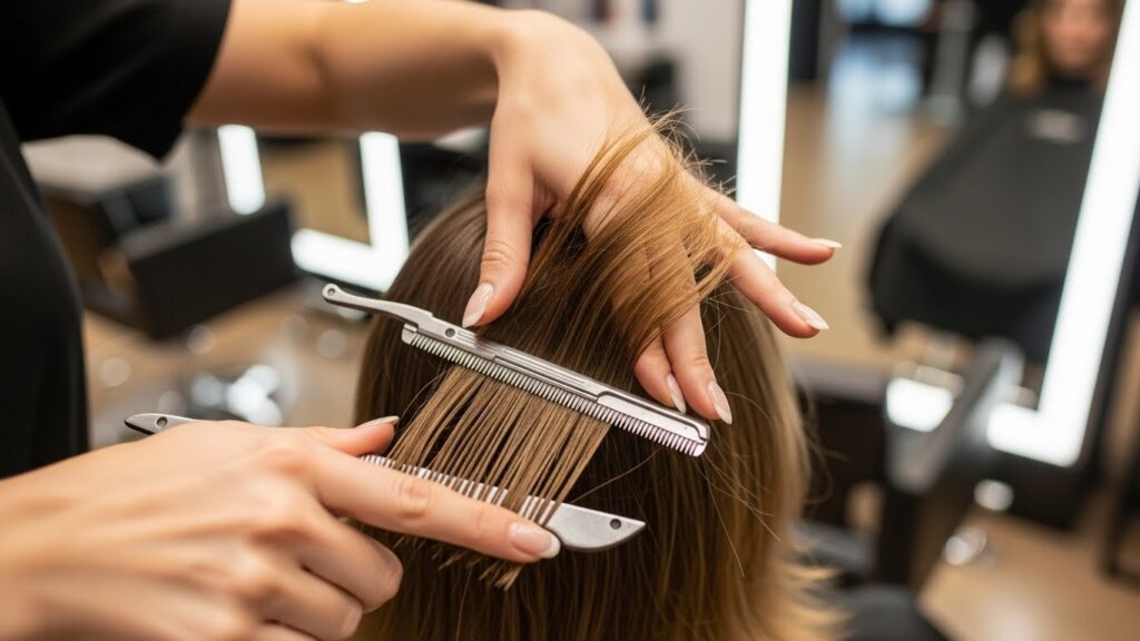 Say things like: “I want a collarbone-length bob with soft, textured layers.” “I’m looking for something very low-maintenance and lived-in—think piece-y ends, not a blunt line.” “Please cut it to air-dry well. I want movement, not a stiff shape.” It can be incredibly helpful to bring pictures that showcase the texture and softness, rather than just the length. Emphasize that you want a cut that grows out beautifully and requires minimal daily styling.