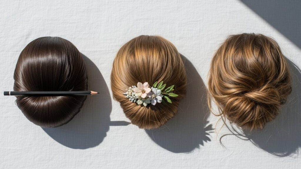 The Office-Chic Tuck: Keep it sleek and polished. Use a smoothing serum before styling and ensure every hair is in place. A deep side part can add a modern, powerful edge. Secure it with a minimalist gold hair pin instead of a pencil.