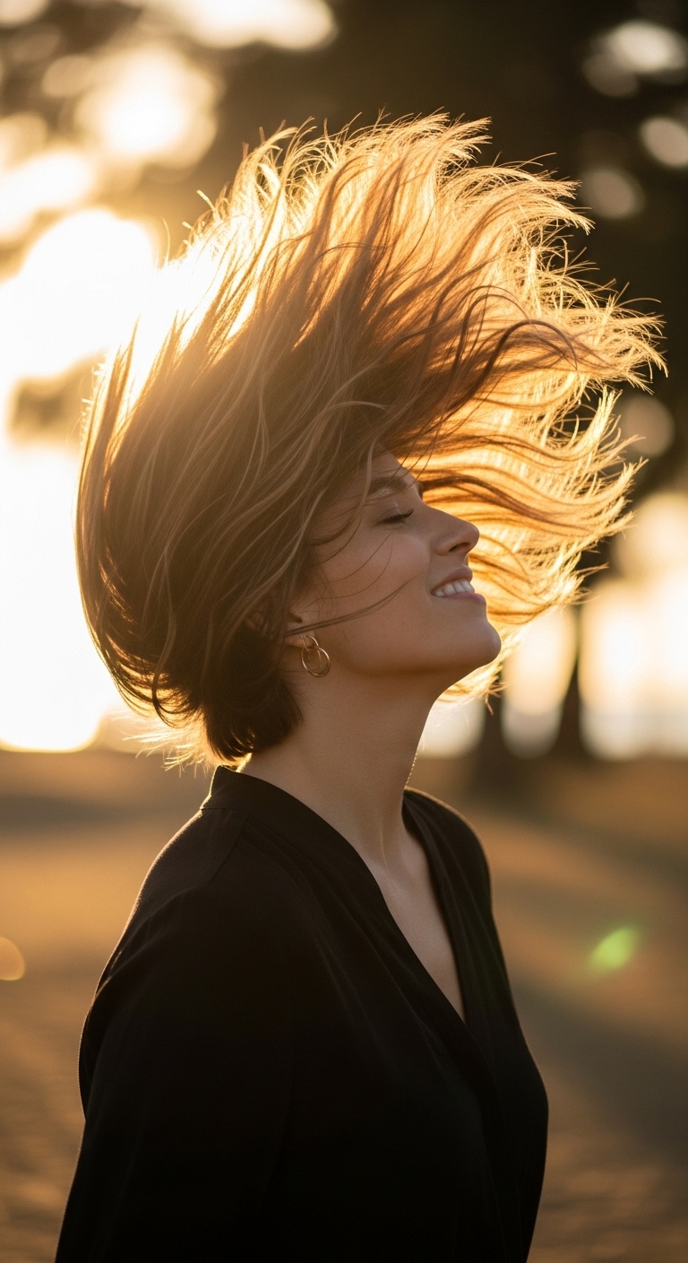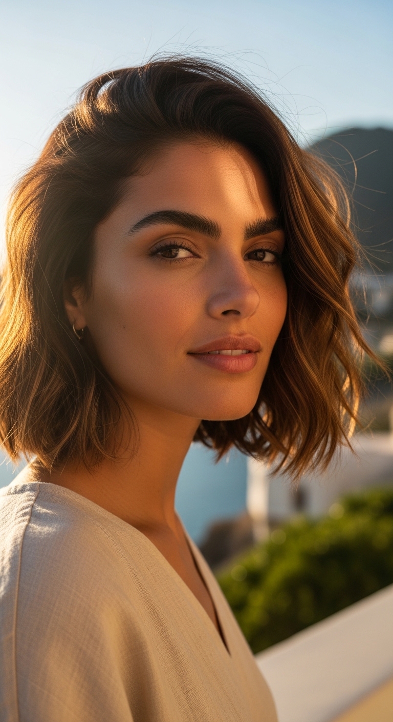 It champions natural hair texture—whether you have a slight wave, straight hair with body, or loose curls. The cut works with your hair’s natural movement rather than forcing it into a stiff shape. This makes it incredibly low-maintenance in spirit (though achieving that perfect tousle might require some product). It’s the epitome of “undone beauty,” suggesting a woman who is too busy enjoying her life to spend hours on her hair, yet looks impossibly stylish.