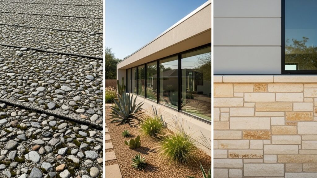 Local and Rugged Materials: This is where West Texas pragmatism shines. Exteriors often combine smooth, painted vertical wood siding (board-and-batten) with native Lueders or limestone, and distinctive, rough-faced “sandstone” bricks. These materials are durable, low-maintenance, and tie the house directly to the regional palette.