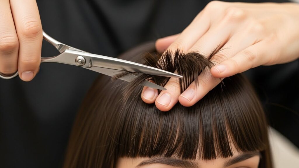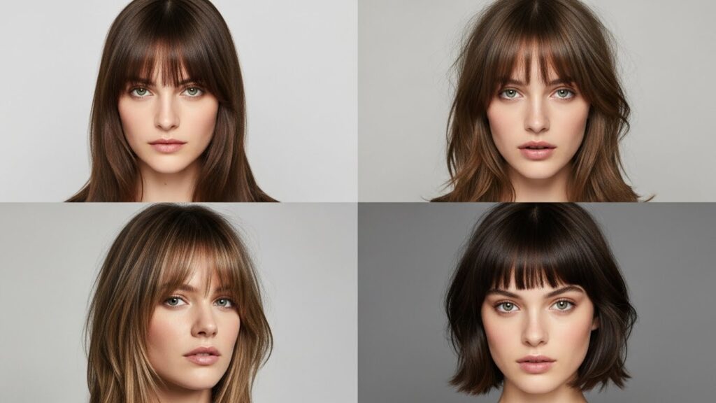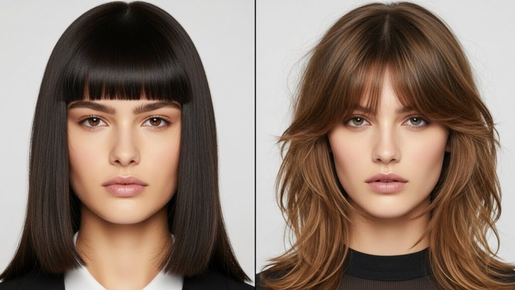 Bottleneck Bangs: A clever variation where the fringe is slightly shorter in the center and longer at the edges, creating a gentle curve that follows the brow bone. It’s a flattering shape that opens up the eyes and avoids a boxy look.