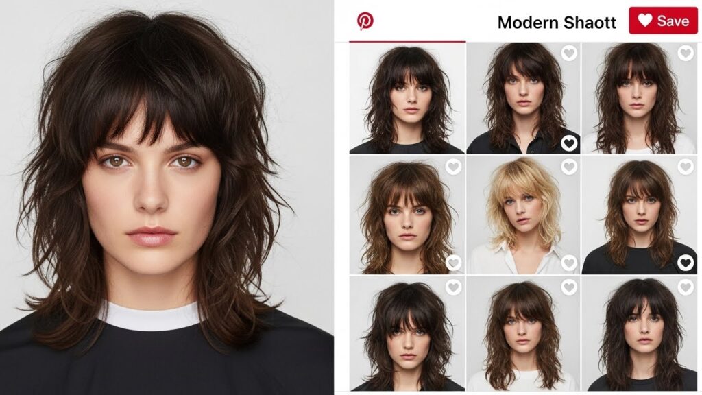 Do Your Homework: Bring photos—but make sure they’re of modern shags or lobs (long bobs). Look for terms like “modern shag,” “textured lob,” or “soft layered haircut” on Instagram or Pinterest.