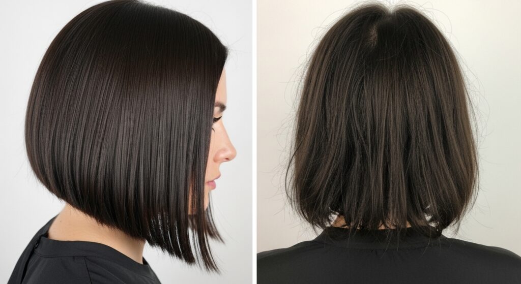 Lack of Texture Hides Less: Texture and layers naturally create movement and disguise slight unkemptness. A blunt cut has none of this camouflage. Any frizz, flyaways, or slight bending at the ends is immediately noticeable against that clean, geometric line.