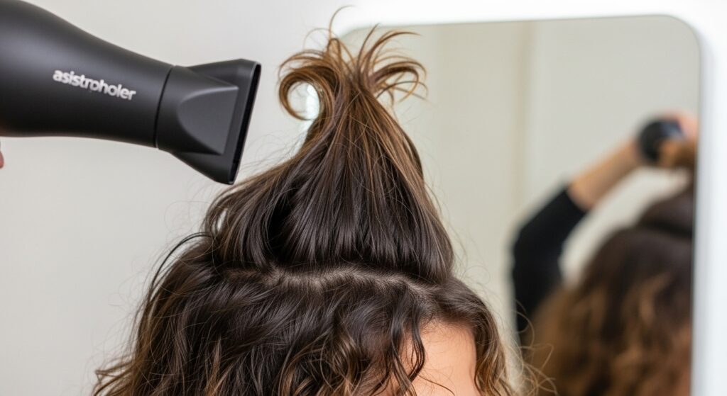 Drying Matters: How you dry your hair is just as important. Avoid rough drying with a regular towel, which causes frizz. Instead, use a microfiber towel or an old cotton t-shirt to gently scrunch out excess water. Then, diffuse your hair. Diffusing not only speeds up drying time but also helps set the curl pattern at the root, creating that iconic shag volume. Dry your hair until a firm cast forms—it should feel a bit crunchy. This is a good thing!