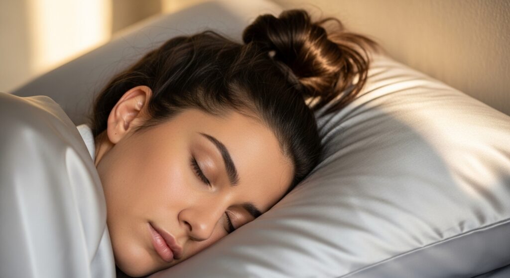 Embrace the Silk or Satin Pillowcase: Making the switch to a silk or satin pillowcase is a game-changer. The smooth surface drastically reduces friction, meaning your hairstyle stays intact, you wake up with less frizz, and your scalp’s natural oils are distributed more evenly instead of being aggressively absorbed.