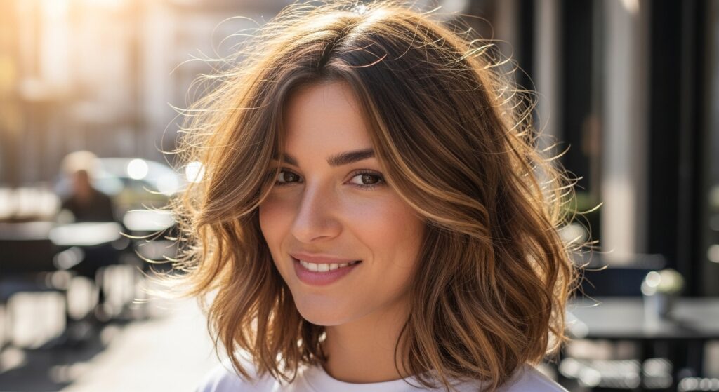 The Protective “Pineapple”: Before bed, gather your hair into a very loose, very high ponytail right on the top of your head—like a pineapple. Use a silk scrunchie to secure it loosely. This technique preserves the volume at your roots and prevents you from crushing your waves or curls overnight. For longer hair, you can even do a loose, high braid instead.