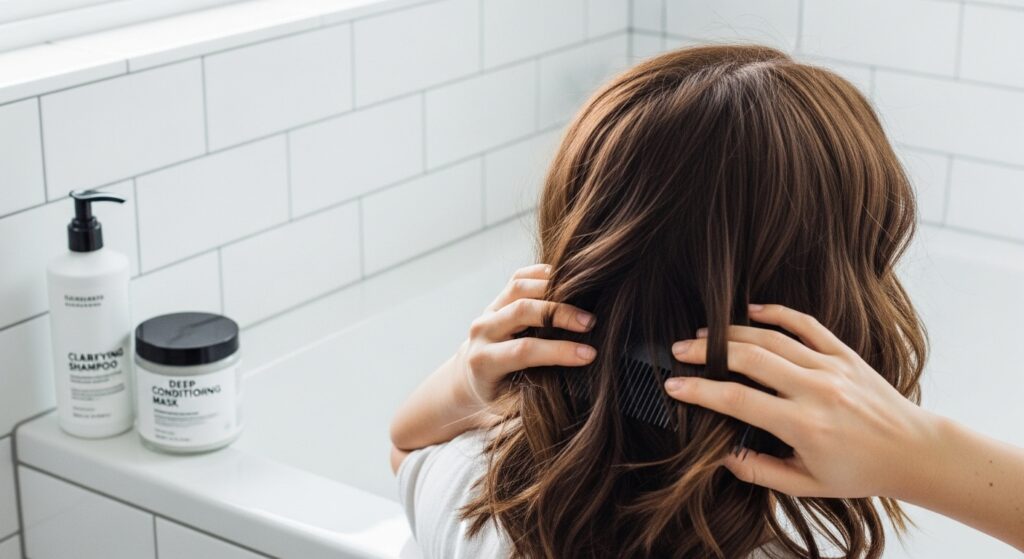 The Clarifying Cleanse: Your scalp and hair have accumulated a week’s worth of product buildup. Follow up with a thorough shampooing, using a clarifying shampoo to deeply cleanse and reset your hair and scalp. This will remove all traces of dry shampoo, hairspray, and oils, leaving you with a clean slate for your next style masterpiece.