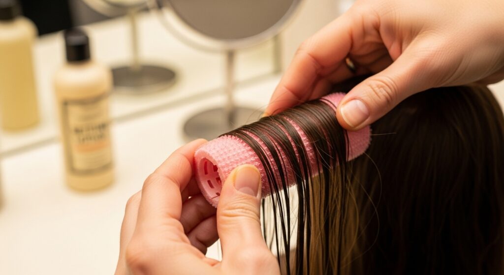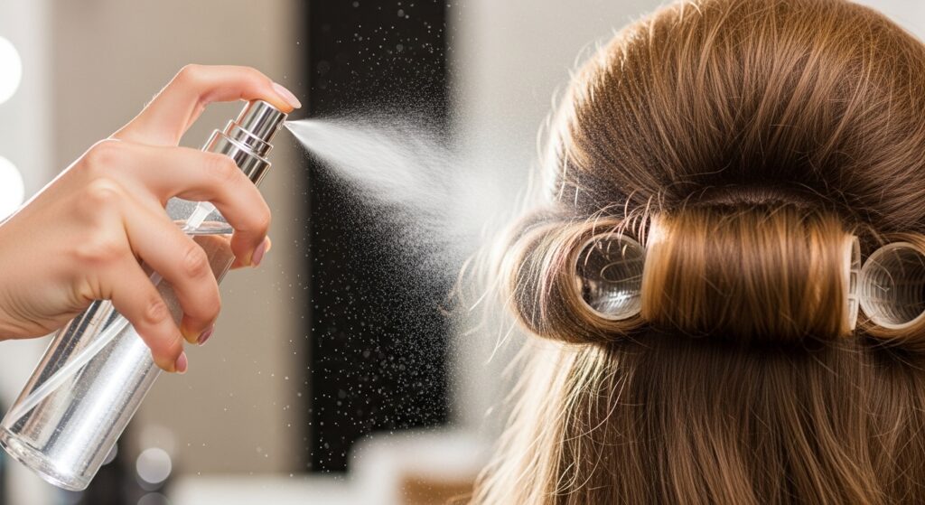 Don’t soak your hair. The goal is to dampen it slightly. Then, use your fingers to reshape curls or gently brush waves back into place. You can even re-roll a few key sections around your fingers or a large roller for a few minutes while you do your makeup to restore bounce. For volume at the roots, try this pro trick: lightly mist the underside of a top section, then roll it back and away from your face around a large roller, securing it with a clip. Leave it for 10-15 minutes. The result is instant, refreshed volume.