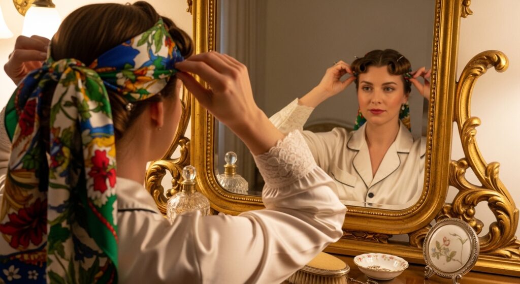 The Silk or Satin Scarf/Bonnet: This is non-negotiable for serious vintage enthusiasts. Cotton pillowcases create friction, which causes frizz, breaks the hair’s set, and absorbs precious oils. A silk or satin scarf, tied securely in a classic 1940s-style turban, or a satin bonnet creates a slippery surface that allows your hair to glide as you sleep, preserving the set perfectly. It also helps maintain your scalp’s natural moisture balance.