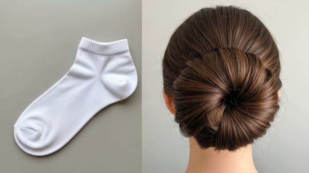 For Thick or Long Hair: A standard ankle sock works perfectly. Ensure your hair is evenly distributed around the donut to avoid a lopsided bun. You may need extra bobby pins to secure all the ends.
