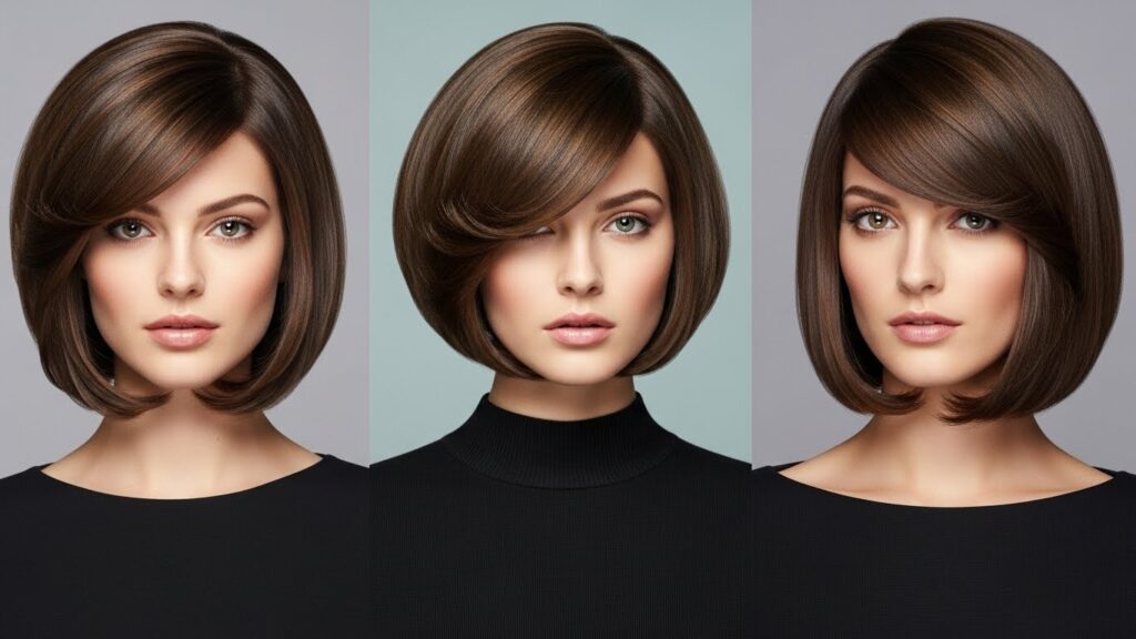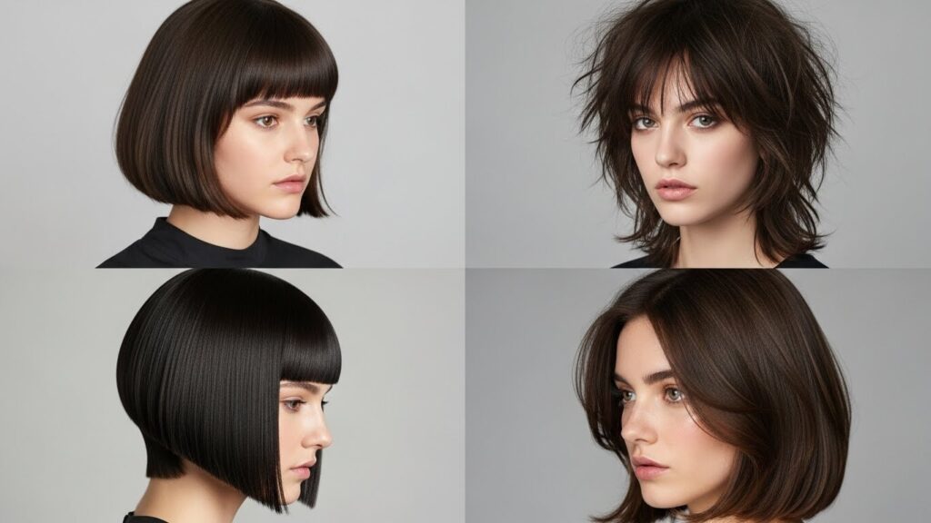 The Stacked Bob with Wispy Bangs: Adding long, wispy curtain bangs or piece-y fringe softens the front and beautifully contrasts with the strong, structured back. It frames the face and adds a touch of effortless romance.
