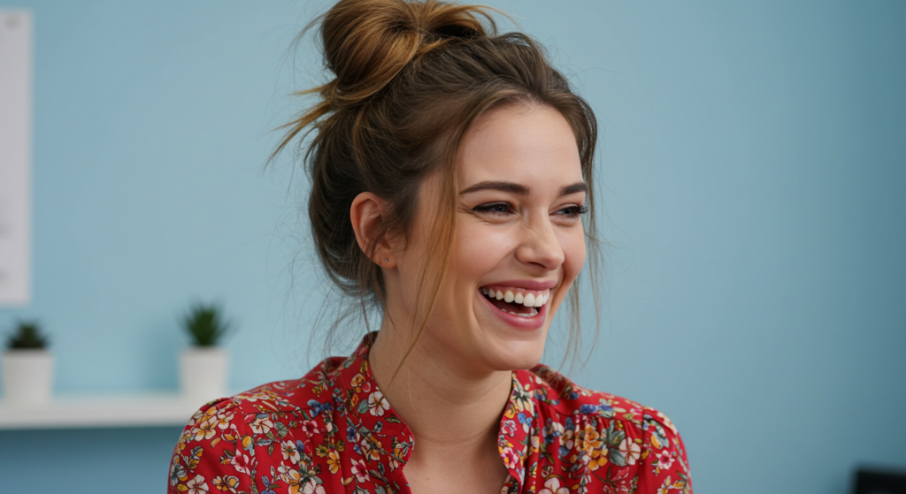 When you’re short on time, the messy top knot is a lifesaver. Gather your hair into a high ponytail, twist it into a bun, and secure it loosely. The key is to keep it relaxed—perfection is overrated when working from home!