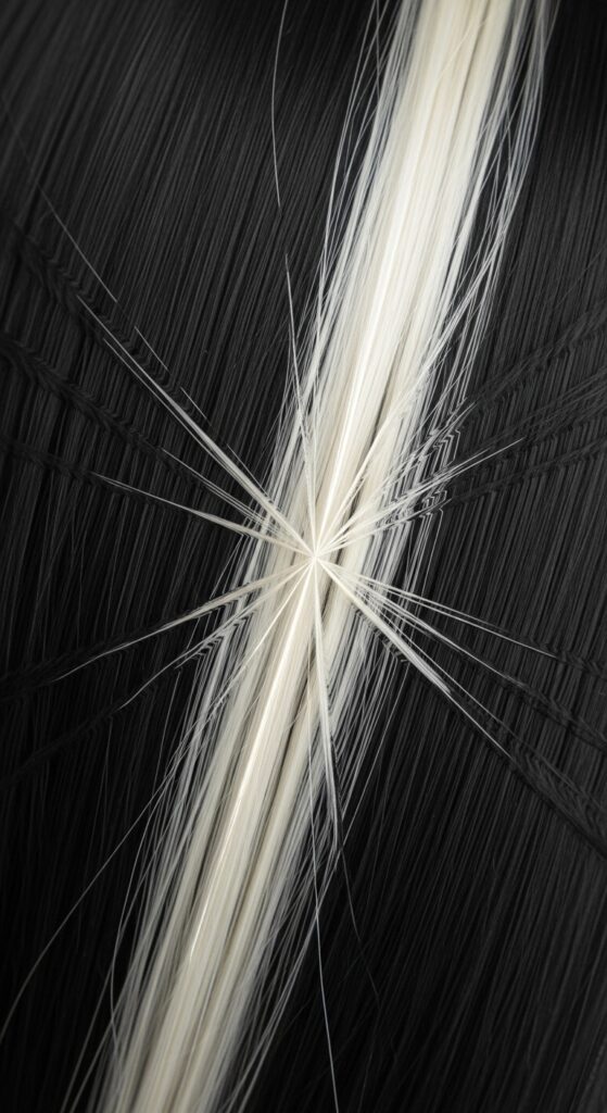 The radiating pattern makes the contrast look intentional and artistic, not random. It’s a high-fashion take on this highlighting method, perfect for making a statement.