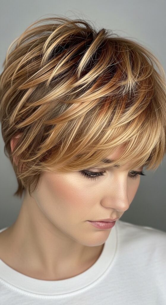 Vibrancy here doesn’t mean neon. It means life. The strategic placement creates contrast between your natural base and the lighter pieces. When light hits those precise slices, your hair looks alive with dimension.