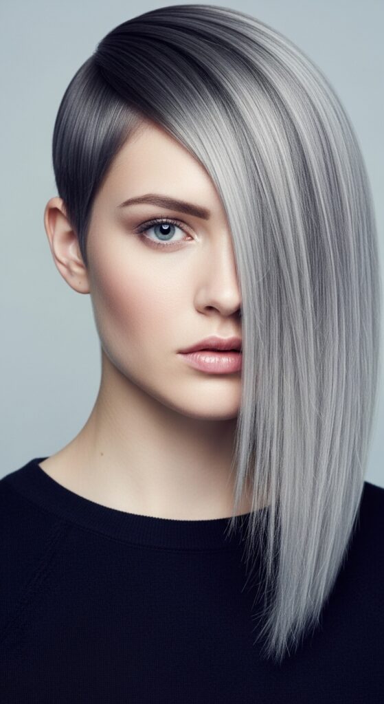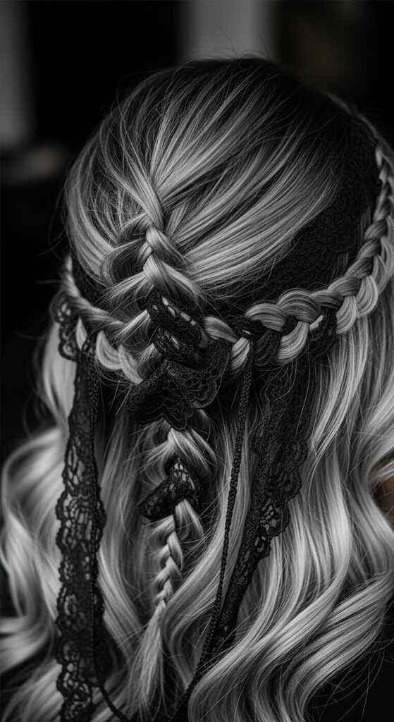 For romantic goth hairstyles, imagine deep shadow roots melting into your natural gray, with velvet ribbons. For glitchy glam hair, the gray base makes pops of pastel or electric color really stand out.