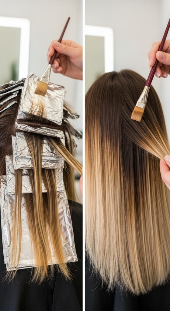 It’s a detailed process. Your colorist will section your hair very finely. They will then hand-paint or use a special technique to apply the custom mix of colors.