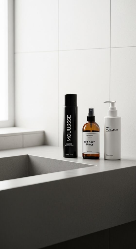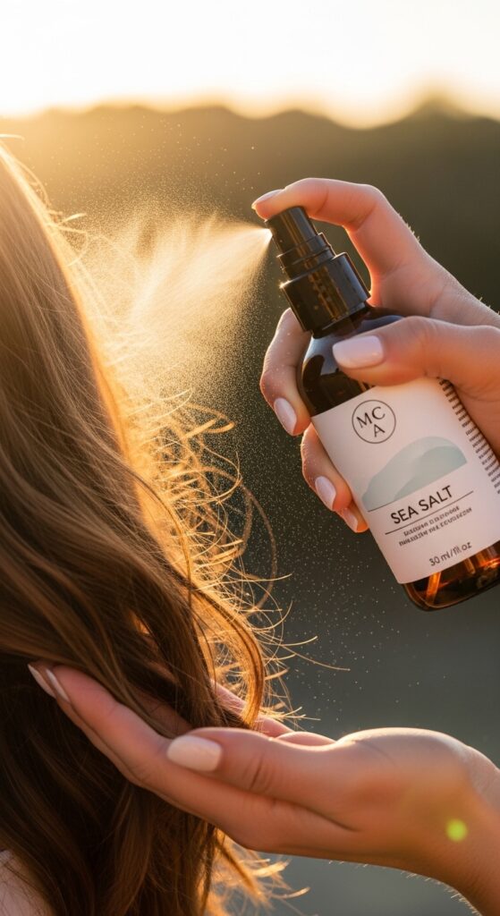 - Texturizing Sea Salt Spray: Spritzed on mid-lengths to ends for piece-y separation.