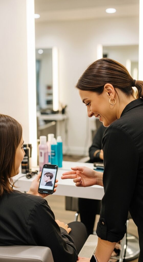 Point out what you love: “I like how this bob bends here,” or “See how these pieces separate? That’s the texture I’m after.” This gives your stylist a clear visual target to work towards with their techniques.