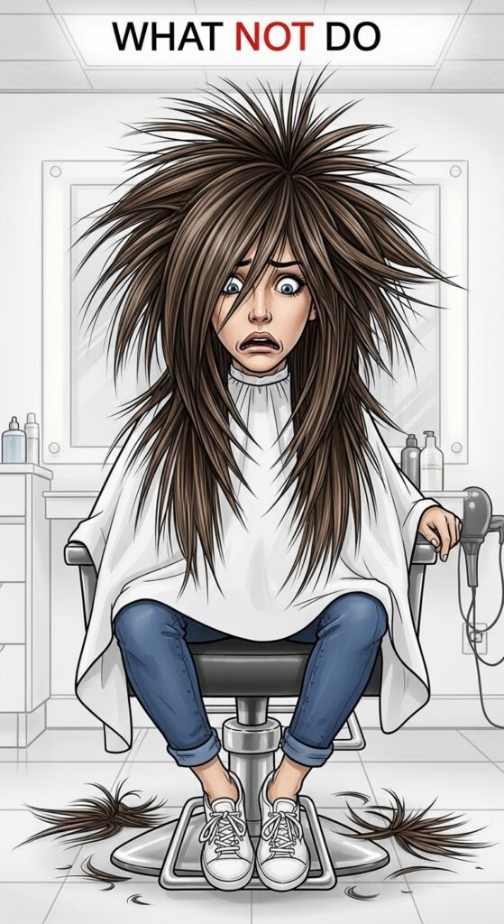 Another is getting the graduation too high up. For most, starting the layers below the jawline is more flattering and maintains weight. Always communicate your comfort with layer height!