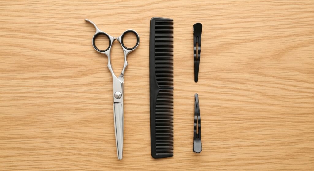 You can do this with just a few key items. First, you need a pair of sharp hair-cutting shears. Please do not use kitchen or craft scissors—they will crush the hair and make the split ends worse.