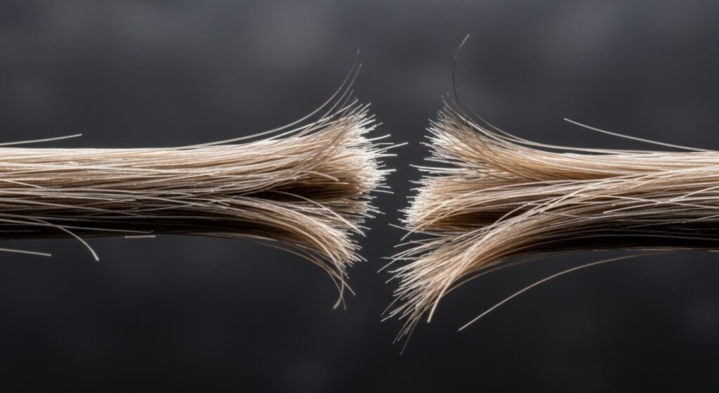 Split ends aren’t just a cosmetic issue. Once the hair shaft splits, that damage can travel up the strand, making the problem worse over time. Your hair becomes more prone to breakage, which is the enemy of length retention.