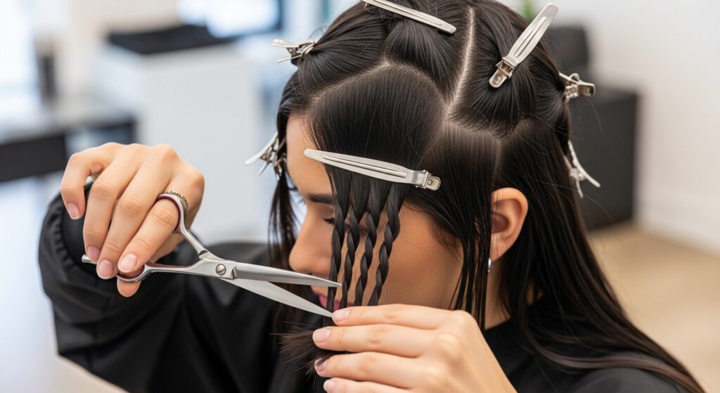 A stylist is also needed for complex cuts like a true hime cut or a sharp asymmetrical lob. Use your at-home trims to keep those professional shapes fresh and fray-free for longer.