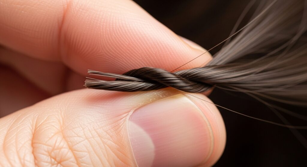 This twisting motion forces any split ends or damaged bits to poke out perpendicular to the twist. They become super easy to spot. Slowly scan the entire length of the twisted section.