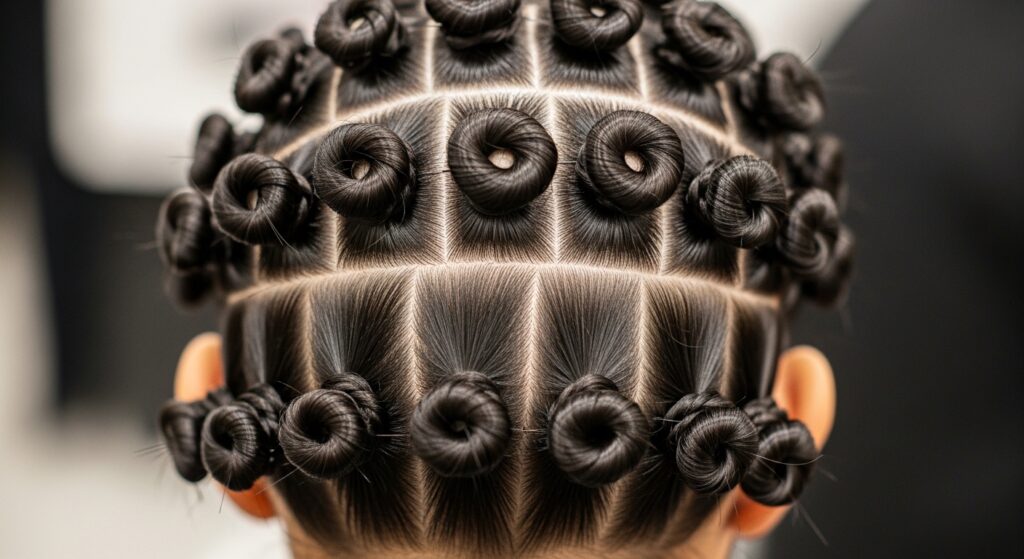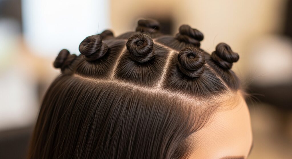 A little pro tip: try to stagger the buns in the second row so they sit in the “gaps” of the row above. This creates a beautiful, interlocking pattern and covers more scalp for a fuller effect.
