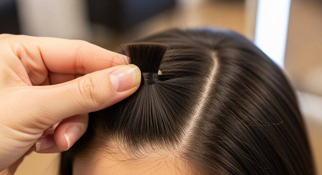 Secure the middle and bottom rows with loose clips so they’re out of the way. We’ll always work from the front of the head back, one row at a time. This keeps everything organized.