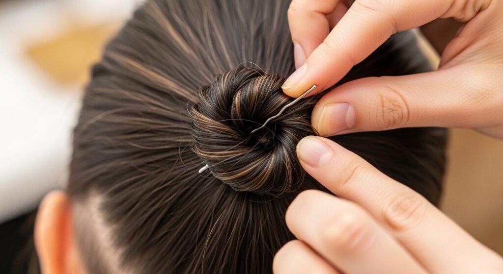 As you move across your head, you might need to adjust the angle slightly. The buns should follow the curve of your head, sitting flat. If a bun feels loose, don’t hesitate to add an extra bobby pin.