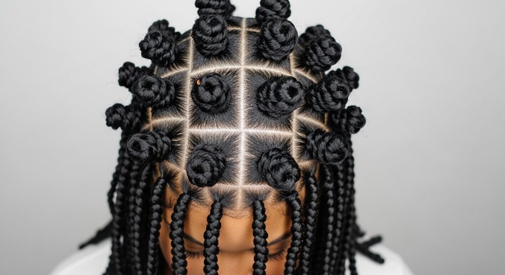 Use a strong-hold edge gel and a fine-tooth comb to make every part razor-sharp. Ensure every twist is perfectly uniform and every bun is coiled in the exact same direction. Keep accessories minimal or non-existent.