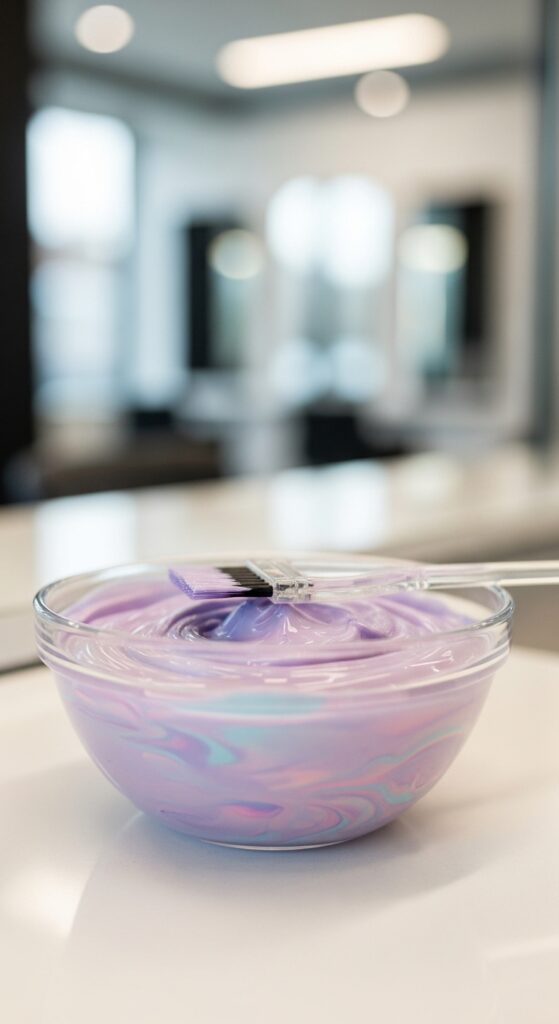 This is where the artistry happens. A violet-based toner cancels yellow, creating that perfect cool, clean lilac base. Don’t skip this step—it’s what turns brassy blonde into dreamy pastel.