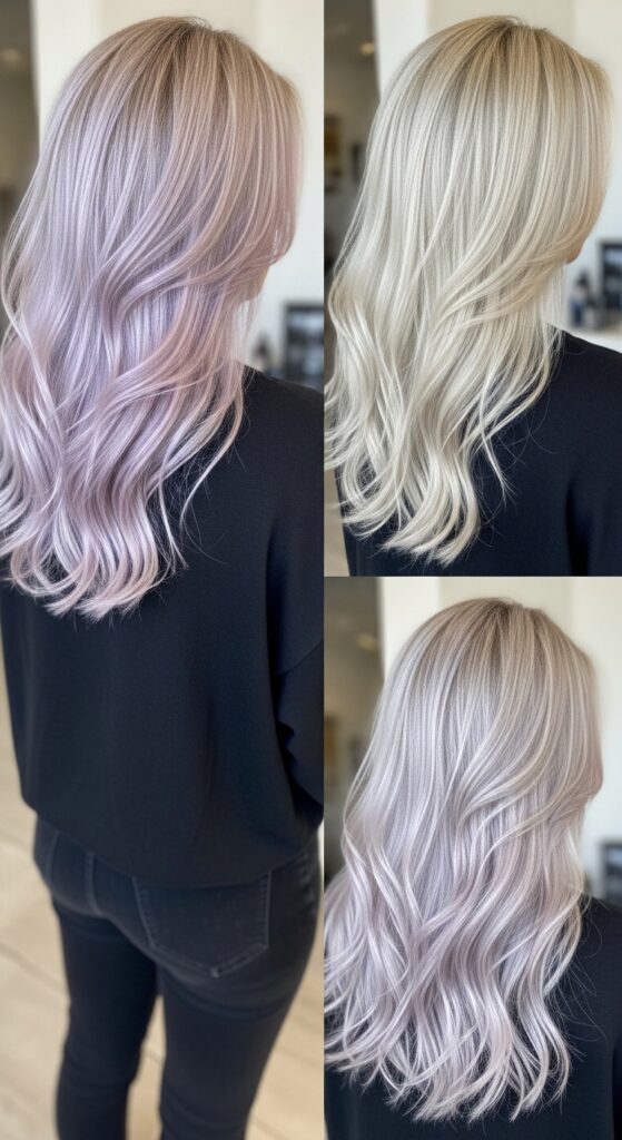 I know box dyes are tempting. But for pastels like lilac, I strongly, strongly recommend the salon. Achieving an even, pale blonde base at home is extremely difficult, and applying pastel toner unevenly can lead to patchy, gray, or muddy color.