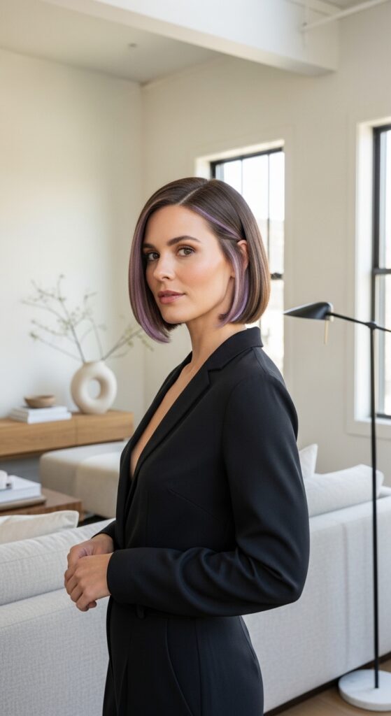 Imagine a perfectly blunt, glossy bob. Now, imagine hidden inside are a few soft lilac streaks. This is quiet luxury with a secret. The color is revealed only in certain lights or with movement, making it incredibly chic and personal.