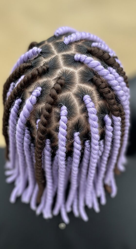 If you have a natural texture or love protective styles, twists and braids are a phenomenal canvas for color. Adding lilac to individual twists creates a stunning, dimensional look that’s full of movement.