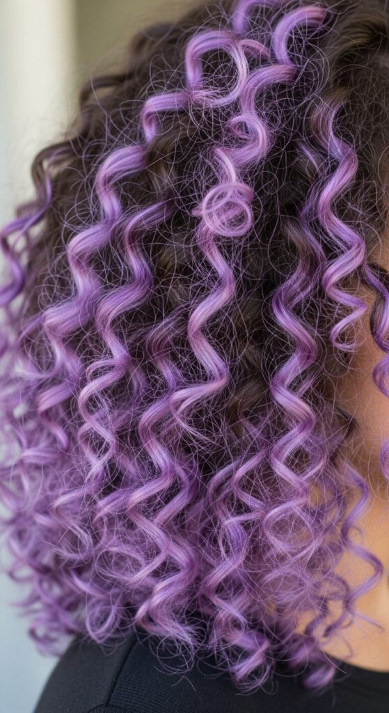 On curls and coils, lilac is absolutely magical. The color plays with the light and shadow of each curl, creating incredible depth. Instead of uniform streaks, ask your stylist to paint random curls or just the tips for a “confetti” effect.