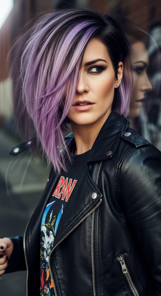 This combo feels fashion-forward and intentional. The softness of the lilac balances the edginess of the asymmetrical cut, creating a look that’s both strong and romantic. It’s a brilliant way to personalize a statement haircut.