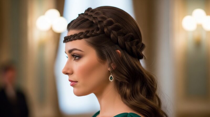 Use one of your own braids as a hair accessory. This creates a beautiful, ethereal headband effect that keeps hair out of your face in the most elegant way possible. It feels very princess-core but in a cool way.
