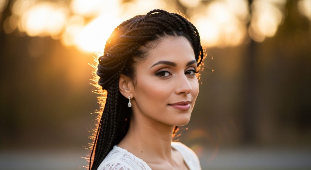 This is my go-to for a bad hair day or when I need to look polished fast. It gives off major romantic, ethereal vibes with zero effort. It works with any braid length, even if they’re a bit frizzy at the roots.