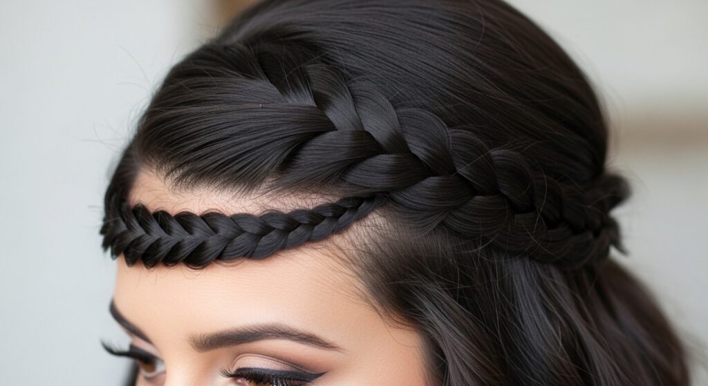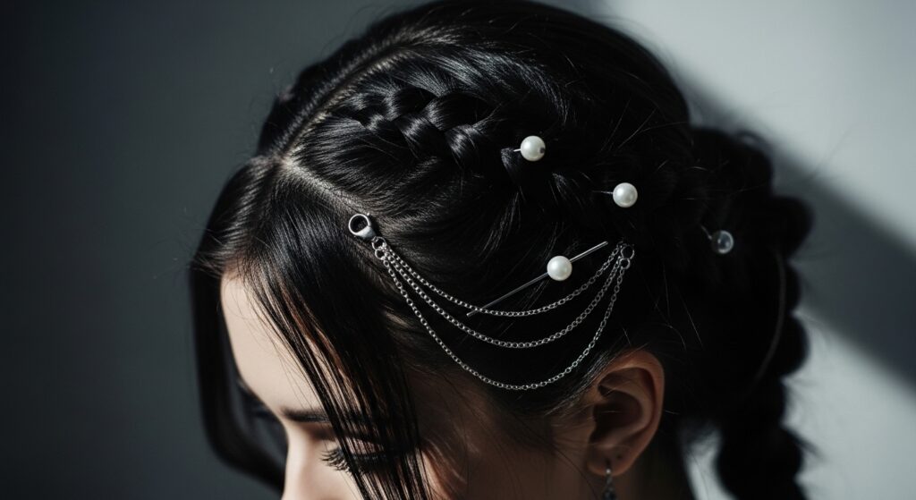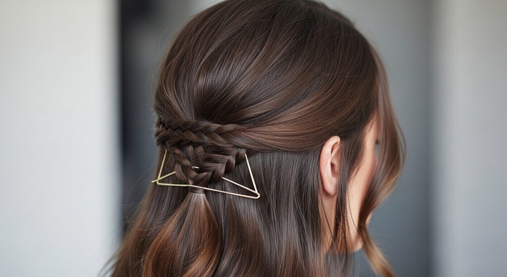 Pin a small braid in a straight line across the crown. Or create a curved shape near your temple. You can also criss-cross them at the back. This adds a touch of modern, minimalist artistry to your look in seconds.