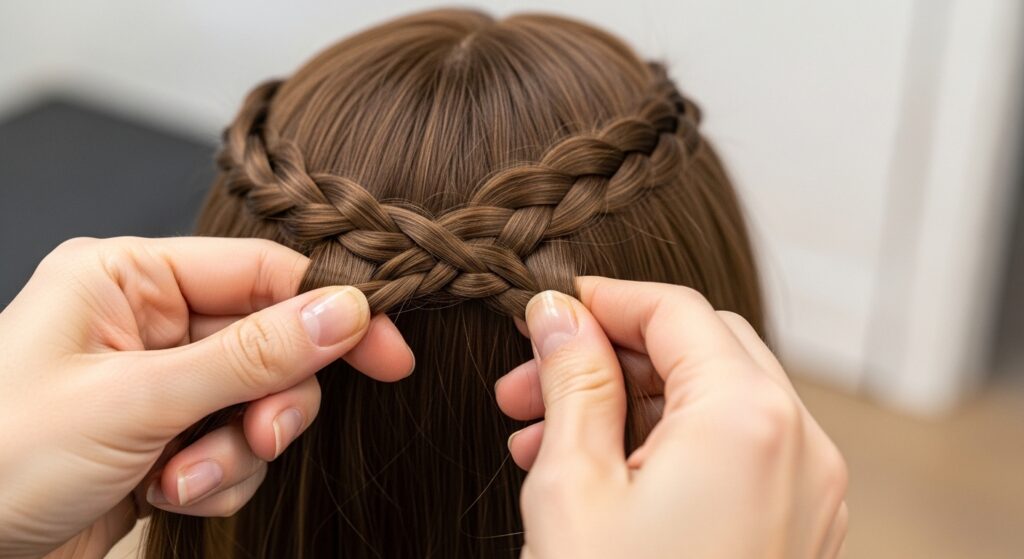 Create your first braid around the crown. Then, directly below it, start a second, slightly thicker braid following the same path. Pin the end of the second braid under the first. This builds volume and detail that’s absolutely stunning.