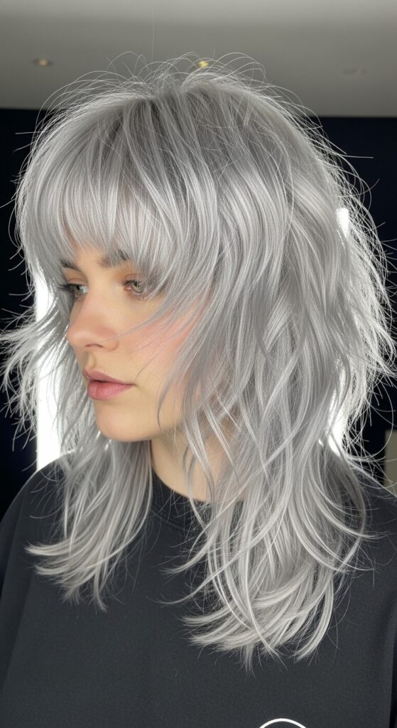 Glitchy glam hair is all about intentional imperfection. This update adds unexpected, choppy texture within the classic shag shape. Imagine a digital glitch—a few shorter, sharper pieces mixed with soft ones. It’s artistic and cool.