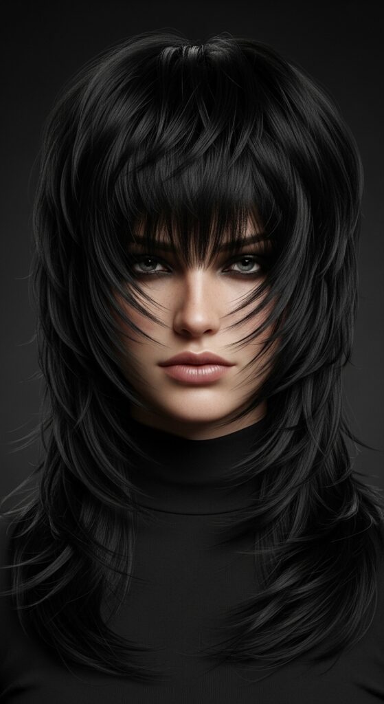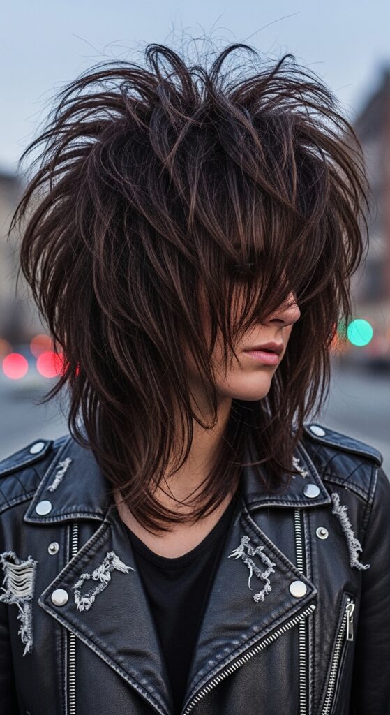 All the shaggy layers are built into this asymmetrical base, creating incredible movement. It’s a statement cut that still feels wearable. Style it sleek or messy—the shape does all the work.