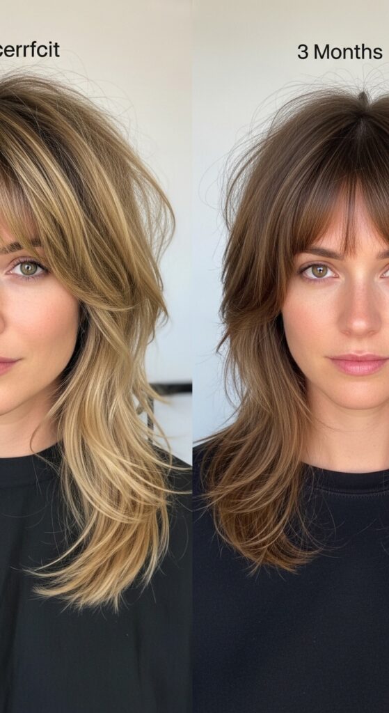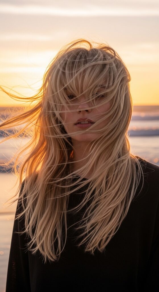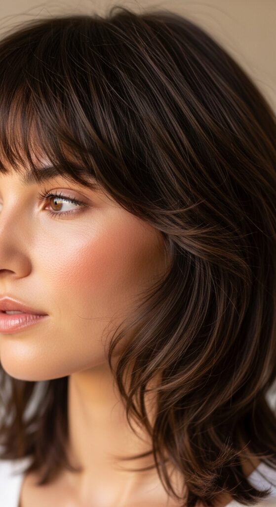 Sometimes, one strong detail changes everything. Adding a strong, blunt bang to a shag instantly modernizes it. It grounds the texture and gives the face a cool, framed focus. This is a go-to for 2026 hairstyles.