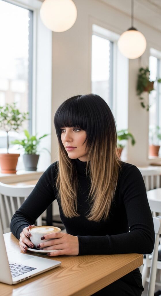 You can go micro or full-width. Pair it with collarbone-length layers for a perfect balance. The bang requires a quick flat-iron touch-up, but the rest of the cut can air dry. It’s high-impact with medium effort.