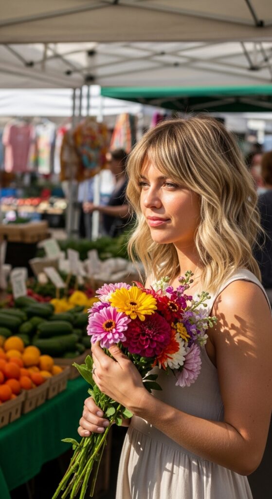 It works with a collarbone-grazing length or a longer style. Ask your stylist for “lived-in” layers and a face-framing shape that doesn’t require much styling. A soft side part completes the look.