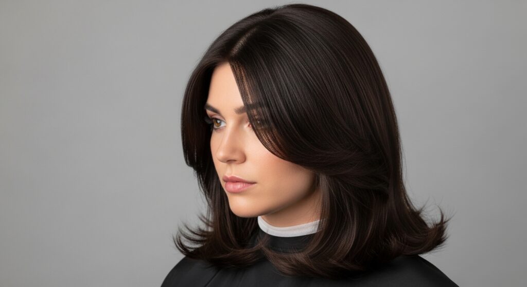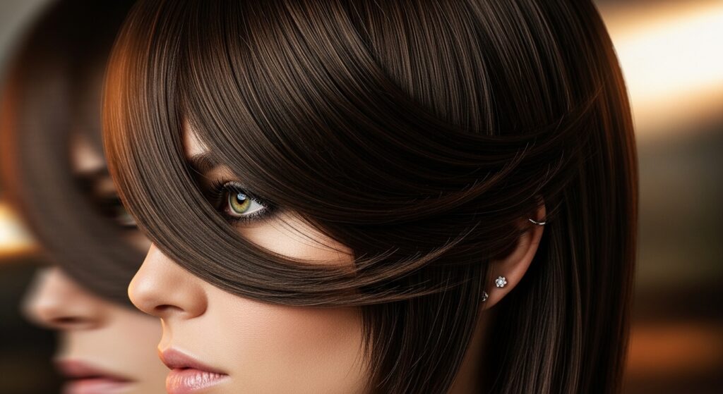 It works best with straight hair and a confident attitude. Pair it with an asymmetrical lob for a truly fashion-forward look. This isn’t a subtle change—it’s a mood.