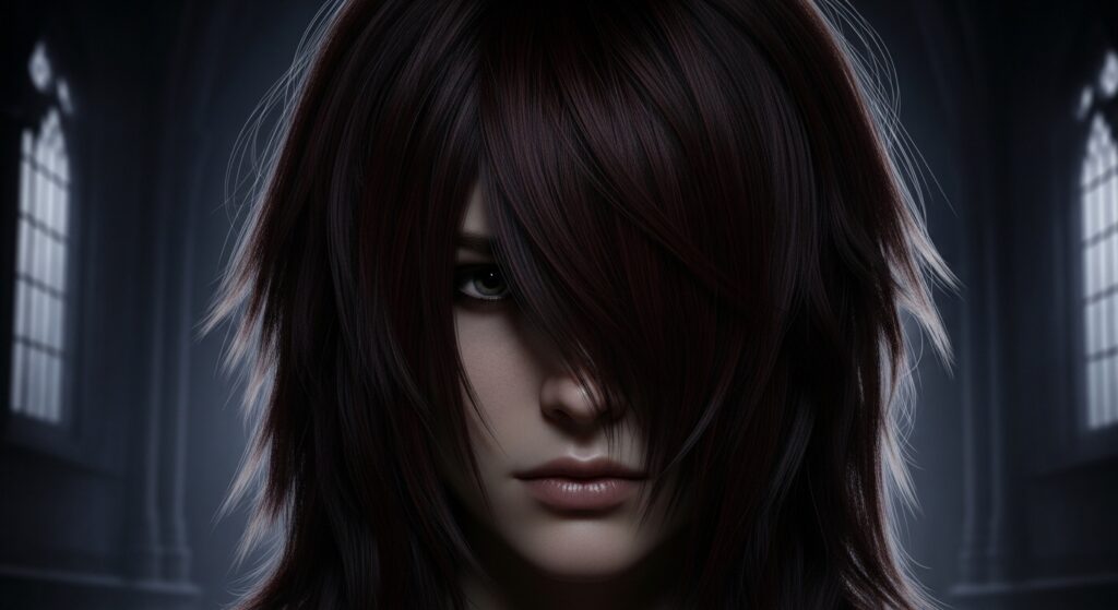 It’s less polished than blunt bangs and has a poetic, undone quality. This is a key element of romantic goth hairstyles—think softness with an edge.